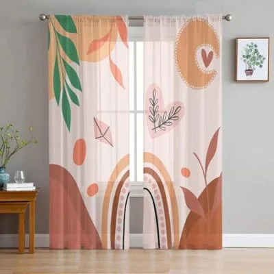 День Святого Валентина Любовь Абстрактные Растения Прозрачная Занавеска Для Окна Тюлевые Шторы для Гостиной Спальня Отель Домашний Декор Вуаль Шторы 135W x 114H(cm)