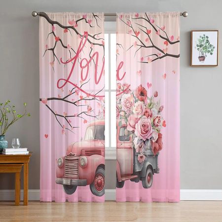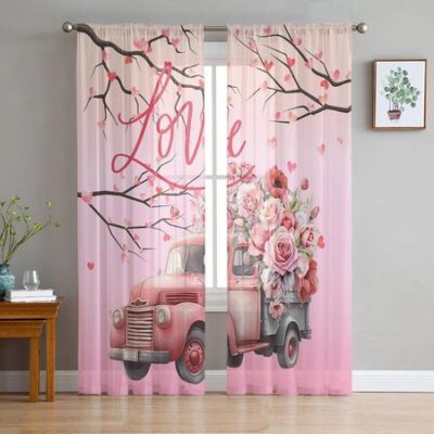 День святого Валентина любовь грузовик ветка розы прозрачная оконная занавеска тюлевые шторы для гостиной спальни отель домашний декор вуаль шторы 135W x 114H(cm)