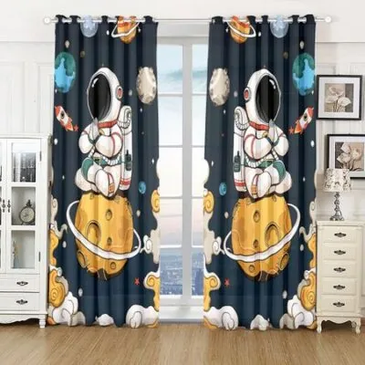 Дешевые мультяшные 3D-шторы «Космический человек, планета», 2-панельные шторы для детской комнаты для мальчиков и девочек, спальни, гостиной, декоративные шторы 100W130H(CM)40x51inGrommet Top