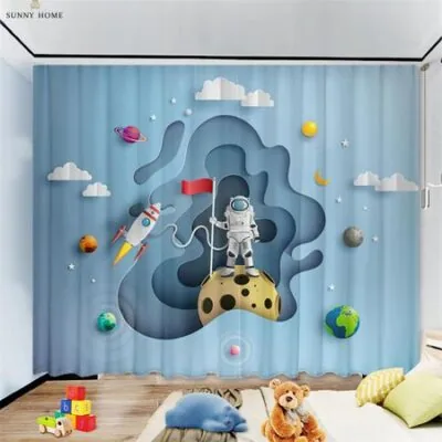 Детская комната с изображением астронавта, комната для мальчика, шторы с изображением мультфильмов, украшение окна, шторы для украшения дома, можно настроить, 2 шт. W50xH140(CM)x2PCS&Rod pocket