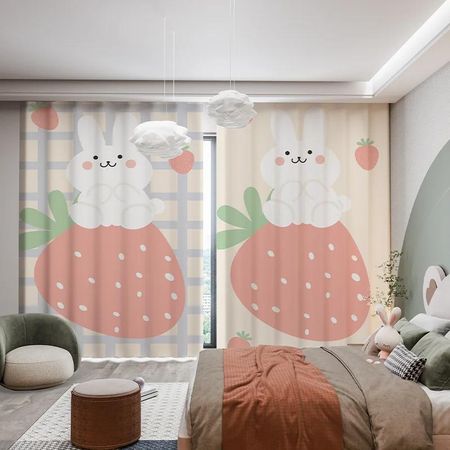 Детская комната спальня плотные затемняющие шторы милый мультфильм розовый клубника кролик медведь затеняющие шторы для комнаты девочки 2 шт. W55 X H120cm X 2Grommet Top