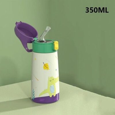 Детская термокружка из нержавеющей стали с трубочкой и чехлом, герметичная термокружка с рисунком из мультфильма, детская термокружка для воды 350-500ML