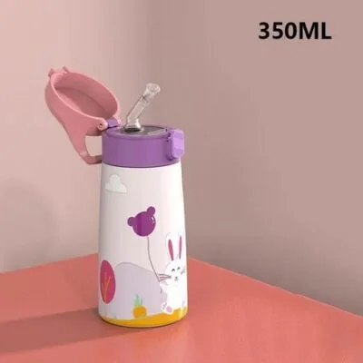 Детская термокружка из нержавеющей стали с трубочкой и чехлом, герметичная термокружка с рисунком из мультфильма, детская термокружка для воды 350-500ML