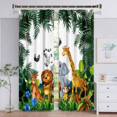 Детские шторы с принтом парка развлечений с изображением слона для гостиной, шторы Cortinas для детей, для мальчиков и девочек, украшения для окон в спальне 100W160H(CM)40x63in&Hook