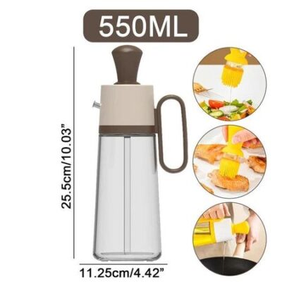 Диспенсер для масла 2 в 1 с силиконовой кистью, распылитель масла для барбекю, стеклянная бутылка для приготовления барбекю, бутылка для приправ, кухонный инструмент коричневый