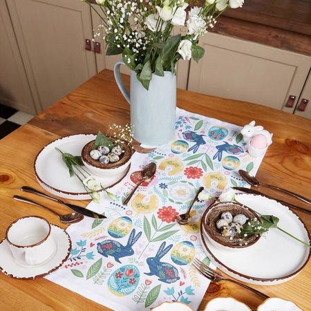 Эта пасхальная скатерть-дорожка станет ключевым акцентом вашего праздничного стола. Она создаёт лёгкое и свежее настроение, напоминая о первом весеннем тепле и пробуждении природы. Традиционный скандинавский орнамент в голубых и синих тонах на белом фоне выглядит современно и уютно, задавая тон всей сервировке.ОсобенностиУдобный прямоугольный формат 30×70 см идеально подходит для украшения обеденного или кофейного стола.Плотная хлопковая саржа (190 г/м²) приятна на ощупь, хорошо держит форму и не скользит по поверхности.Натуральный 100% хлопок обеспечивает комфорт в использовании и простой уход — дорожку можно стирать при 40°C.Универсальная тематика делает её актуальной для любого сезона, а изысканный дизайн понравится взрослым.Создайте свою праздничную традициюТакую скатерть-дорожку приятно доставать из запасов каждый год — она становится частью семейной истории и тёплых пасхальных воспоминаний. Её сдержанный скандинавский стиль позволяет комбинировать с любой посудой, от классического фарфора до современного керамического сервиза. Это простой и элегантный способ превратить обычный завтрак или ужин в светлый праздник для близких.