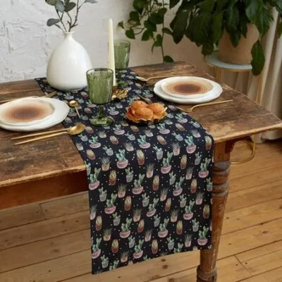 Эта чёрная хлопковая дорожка — основа для безупречного стола. Её сдержанная элегантность и практичность создают идеальный фон для праздничного завтрака, ужина или ежедневных обедов. Гладкая саржа плотностью 190 г/м² мягко стелется, не скользит и надёжно защищает столешницу.ОсобенностиКлассический прямоугольный формат 40×149 см подходит для большинства столов.Натуральный 100% хлопок обеспечивает комфортную тактильность и воздухопроницаемость.Плотная, но мягкая структура ткани (саржа) отличается повышенной износостойкостью.Универсальный чёрный цвет служит гармоничным дополнением любой посуды и сервировки.Подходит для всех сезонов и поводов — от будничных завтраков до торжеств вроде 8 Марта.Практичность в деталяхДорожка рассчитана на частое использование. Она сохраняет вид после многих стирок: используйте деликатный режим при 40°C, избегайте отбеливателей, а для сушки выбирайте низкие температуры. Эта неприхотливость делает её не просто декором, а практичным элементом домашнего обихода для взрослых, который годами поддерживает уют и стиль.