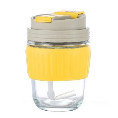 Главная » Все для дома Дорожная кружка Yousheng, 350 мл, противоожоговое уплотнительное силиконовое кольцо, термостойкая, нескользящая, герметичная крышка, портативный стеклянный стакан для питья воды жёлтый Просмотров 1 Practical Household