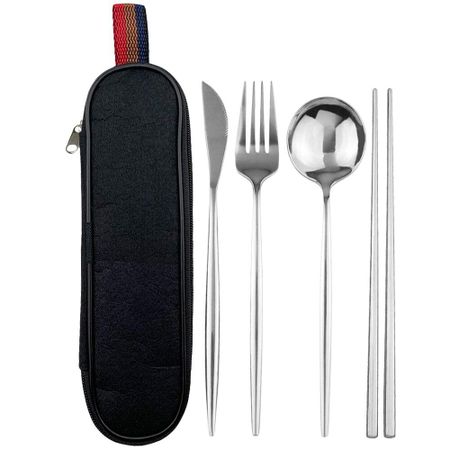 Дорожный набор столовой посуды из нержавеющей стали, набор столовых приборов из черного золота, нож, вилка, ложка, палочки для еды с портативной сумкой, набор студенческой посуды серебряный