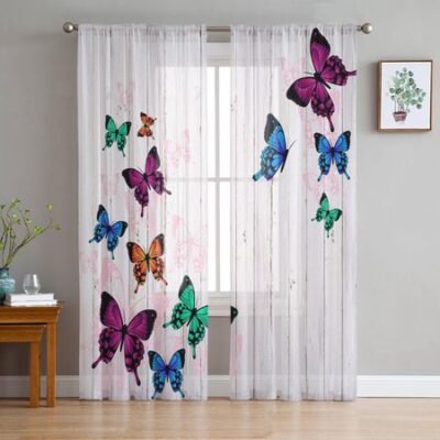 Древесина зерна ретро бабочка цветные прозрачные шторы современные газовые шторы для гостиной спальни вуаль пряжа шторы W135 x H114cm