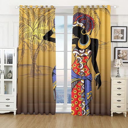 Древний Египет Африканский Этнический Ретро Красный Абстрактное Искусство 2 Части Тонкие Шторы На Окна Занавески Для Гостиной Спальни Декор Кортины 2x50W130H(CM)hook