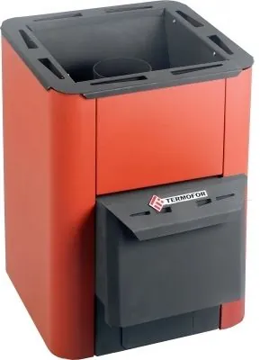 Укороченный топливный канал в дровяной модели Термофор Колибри 9 У терракота (Укороченная) предназначен для топления печи в парной. Устройство имеет цельную верхнюю раму и оригинальную фирменную конструкцию. Печь рассчитана на обогрев маленьких парных — объемом 4-9 м3. Около 25 кг. камней укладываются в открытую каменку рассматриваемой модели. Патрубок дымохода выходит ровно по центру, что удобно при монтаже.