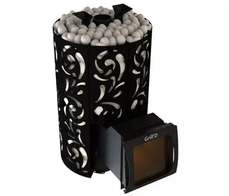 Дровяные печи для саун и бань серии Violet от российского производителя Grill’D отличаются от других линеек наличием каменки закрытого типа и оригинальным дизайном. Внешний декор выполнен в виде растительного орнамента, что перекликается по духу с русской баней и древнерусской росписью по дереву.