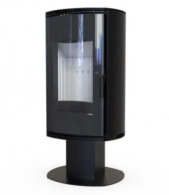 Дровяная печь DEFRO (Дефро) HOME ORBIS TOP, черная сталь отличается стильным дизайном и прочной конструкцией. Данная модель имеет форму цилиндра, который установлен на пьедестал. Дверца оснащена большим панорамным окном, которое не пачкается во время горения, благодаря системе чистое стекло.