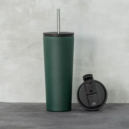 Двухслойная термокружка из нержавеющей стали большой емкости для домашнего офиса, кофейные чашки с трубочкой и крышкой, герметичные переносные бутылки для воды 16oz