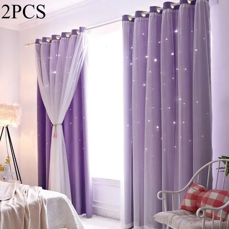 Двухслойные романтические прозрачные детские занавески для девочек с вырезанными звездами для гостиной, спальни, оконные занавески 150X200cm