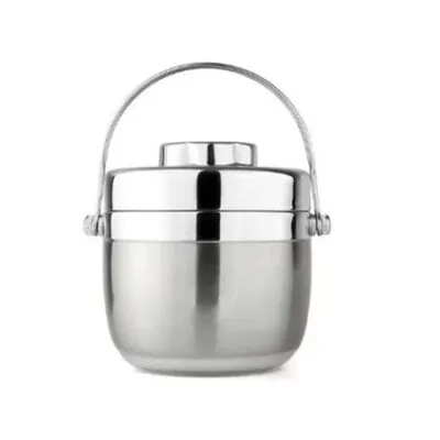 Двухслойный термоизолированный ланч-бокс 1200/1500 мл, термос, супница, портативный термоконтейнер для еды, школьный 1.2L серебряный