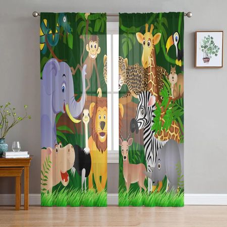 Главная » Все для дома Джунгли Лес Мультфильм Животное Лев Слон Шифоновые Прозрачные Шторы для Гостиной Спальня Украшения Окна Вуали Тюлевая Занавеска W135 x H115cm x1Grommet Top Просмотров 1 Yiran Furniture