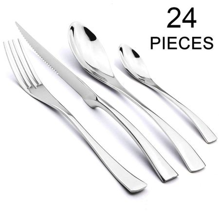 Еда, 24 шт., набор столовых приборов на 6 радужных столовых приборов, набор столовых приборов из нержавеющей стали 18/10, нож для стейка, посуда, вилка, ложка, чайная ложка, набор столовых приборов серебряный