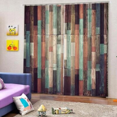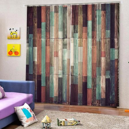 Ферма деревянная дверь планка доска украшение высокая затемнение спальня гостиная окно плотная штора для спальня деревянная дверь стиль W55 X H120cm X 2Grommet Top