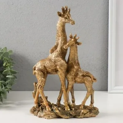Эта скульптурная композиция из искусственного камня переносит в ваш дом частичку безмятежности африканской саванны. Фигура, запечатлевшая трогательную заботу матери-жирафа о своём детёныше, выполнена с удивительной анатомической точностью и наполнена теплом.Приятный бронзовый оттенок и фактурная поверхность, имитирующая благодатную шероховатость натурального камня, придают изделию солидность и монументальность, несмотря на камерный размер. Полистоун — современный композитный материал — гарантирует долговечность, сохранность деталей и приятную тяжесть в руках, словно у артефакта из древней коллекции.Символ нежности и защиты: композиция станет многогранным подарком ко Дню матери, Дню отца или любому семейному празднику, выражая ваши чувства без слов.Универсальный акцент интерьера: статуэтка органично дополнит книжную полку, рабочий кабинет, сервант в гостиной или станет центром элегантной столешницы, внося ноту умиротворения и природной гармонии.Выразительная детализация: тщательно проработанные черты, длинные шеи и характерный силуэт взрослого животного с детёнышем демонстрируют внимание создателей к художественной правде.Практичность и долговечность: материал не боится влаги, устойчив к выцветанию и не требует особого ухода, сохраняя свой вид на долгие годы.Готовое решение: скульптура самодостаточна и не требует сборки, будучи завершённым произведением, которое можно сразу использовать для декора или в качестве подарка.Выбирая эту скульптуру, вы приобретаете не просто предмет интерьера, а эмоциональный артефакт, который напоминает о самом главном — о связях, заботе и спокойной силе, что делает любой дом уютнее.