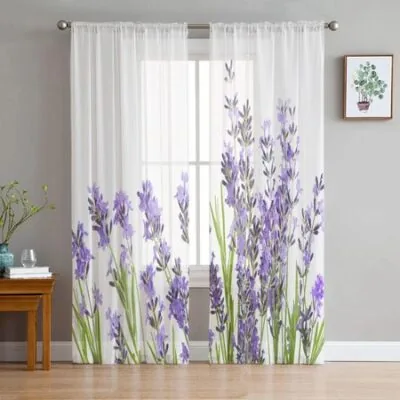 Фиолетовый лавандовый зеленый листья растительное поле тюль прозрачные шторы для гостиной спальня декор окна занавеска вуаль органза шторы W135 x H274cm x1Grommet Top