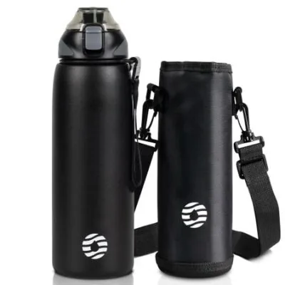 FJbottle Water 1 Вакуумная спортивная бутылка для холодной воды, совместимая со спортивной широкой бутылкой для воды из нержавеющей стали, в комплект входит черная бутылка для очистки, литр, изолированная,