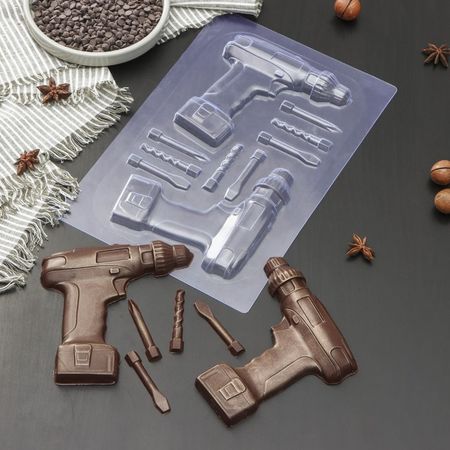 Форма для шоколада и конфет «Шуруповерт», пластик, прозрачная