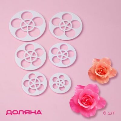 Хотите превратить обычные десерты в произведения искусства? Тогда этот набор форм для марципана, теста и мастики станет вашим верным помощником!В комплекте 6 вырубок, каждая из которых создана для того, чтобы придать вашим творениям форму изящных роз. С их помощью вы сможете легко и быстро украсить торты, пирожные, печенье и другие кондитерские изделия, добавив им неповторимый шарм и элегантность.Создайте изысканные узоры: выемки помогут вам создать детализированные цветочные мотивы, которые добавят изюминку любому десерту.Удобство и простота: выемки изготовлены из прочного пластика и имеют удобную форму, что делает их простыми в использовании.Неограниченный творческий потенциал: используйте выемки для создания разнообразных цветов, комбинируя их с другими элементами декора.Качество и надежность: выемки прослужат вам долго, сохраняя свой первоначальный вид и функциональность.Этот набор выемок — это отличная идея для тех, кто хочет добавить изюминку в свою кондитерскую работу и порадовать своих близких красивыми и вкусными десертами.