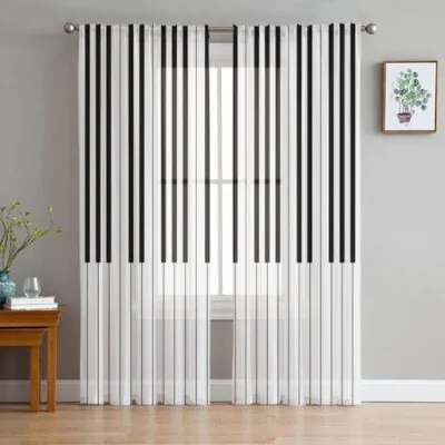 Фортепианные черно-белые клавишные музыкальные простые прозрачные шторы для гостиной тюль для окон вуаль пряжа короткие шторы для спальни W135 x H244cm