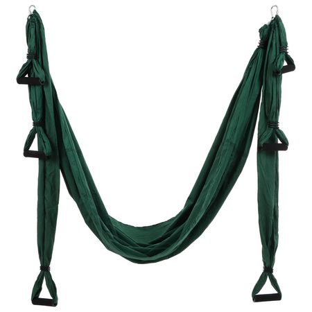 Гамак для йоги подходит начинающим или любителям. Полотно сделано без лишних швов. Используется дышащая и быстросохнущая ткань. Под неопреновыми держателями сделаны небольшие фиксаторы для стоп. Рекомендуется для домашнего использования или в йога-студиях.Это основное снаряжение для занятий антигравитационной йогой. Преобразованная конструкция трапеции, на которой выполняются некоторые упражнения гимнастов, позволяет отрабатывать большое количество сложных перевёрнутых асан, предполагающих нахождение в воздухе без контакта с полом и стенами. Ощущение невесомости, парения в воздухе даёт возможность сконцентрироваться на процессе медитации. На таких занятиях работают основные мышцы корпуса, благодаря чему вы научитесь управлять своим телом, разовьёте координацию движений. При этом улучшается кровообращение и происходит насыщение тканей и органов кислородом. Новые ощущения подарят заряд бодрости и хорошее настроение.ОсобенностиТкань: нейлон.Шесть ручек с мягкими и удобными держателями для рук и ног.Рекомендуемая нагрузка: до 200 кг.Комплектация:основное полотно гамака и ручки.стропы для крепления к потолку.стальные карабины в стандартной комплектации.