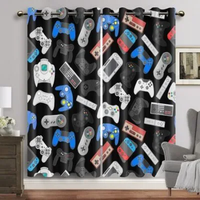 Геймерские шторы для спальни мальчика, декор игровой комнаты, оконные шторы для игры в видеоигры, оконные драпировки, 2 штуки, верх на люверсах, крючок 2x50W130H(CM)hook
