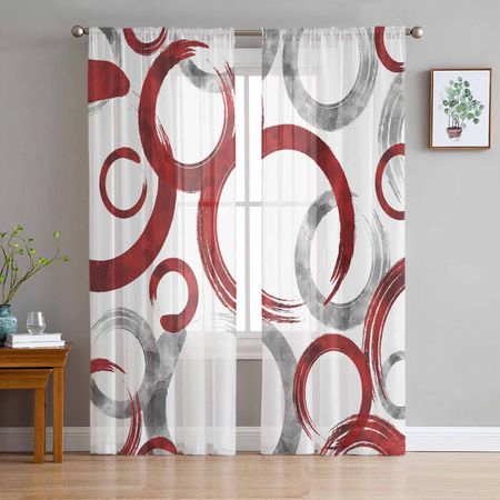 Геометрические круги с кистью для рисования, красные, серые, занавески для спальни, тюль, прозрачная занавеска для гостиной, домашний декор, вуаль, шторы 135W x 160H(cm) x2