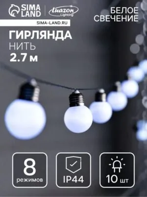 Главная » Все для дома Гирлянда «Нить», 2.7 м, с насадками «Белые шары», уличная, IP44, 10 LED, 8 режимов, солнечная батарея, тёмная нить, свечение белое Просмотров 8 Luazon Lighting