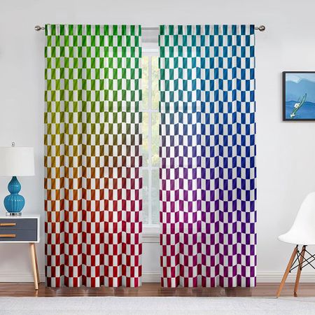 Главная » Все для дома Голубые и розовые клетчатые тюлевые шторы для гостиной, спальни, кухни, украшения для отеля, шифоновая прозрачная занавеска для окна 1 PCS W100XH250cm&Rod Pocket Просмотров 12 Super Six