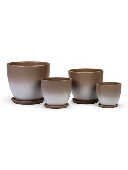 Горшок для цветов «Туман», керамический, с поддоном, коричневый, набор 4 шт.: 600 мл, 1.4 л, 2.5 л, 5 л