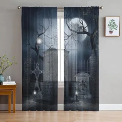 Готический винтажный дом, прозрачная вуаль, шторы для гостиной, спальни, кухни, тема ужасов, загадочный пейзаж, тюлевая оконная занавеска 1 PCS W100XH250cm