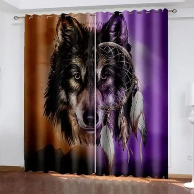 Готовые современные шторы на окна с изображением дикого волка для детей, спальни, гостиной, ванной, кухни, двери в прихожую, шкафа для домашнего декора, 2 шт. W50 X H130(CM)X2Grommet Top