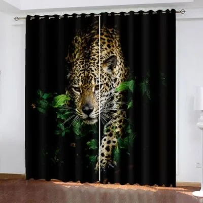 Готовые современные тонкие шторы на окна с изображением дикого тигра и красной розы для детской спальни, гостиной, ванной комнаты, кухни, двери для зала, домашнего декора W50 X H130(CM)X2Grommet Top