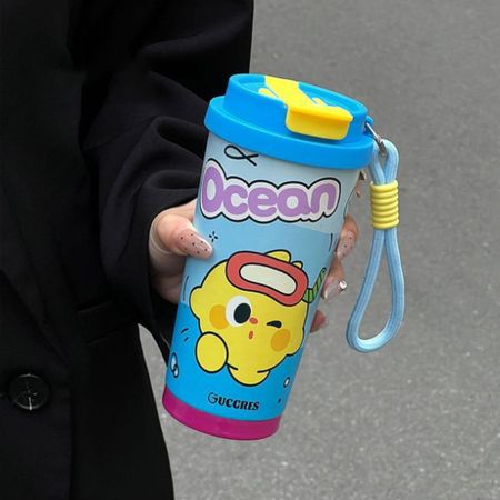 Граффити Двойной Стакан для Кофе 500 мл Термос Тамблер Изолированная Чашка из Нержавеющей Стали Дети синий