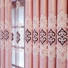 Вышитые шторы для гостиной, балкона, спальни, напольная занавеска, европейская полная затемняющая занавеска для двери, карниз 170*270cm*2pcs розовый