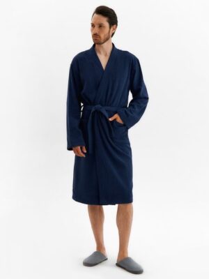 Подарите себе ощущение уюта и расслабления с нашим темно-синим хлопковым мужским халатом. Этот халат — воплощение комфорта и элегантности для вашего дома. Оцените превосходное качество и непревзойденный комфорт в нашем мужском хлопковом халате.Преимущества темно-синего хлопкового мужского халата:100% натуральный хлопок. Невероятная мягкость и комфорт для вашей кожи.Элегантный темно-синий цвет. Добавит изысканности вашему домашнему образу.Идеальная посадка. Размер 56-58 обеспечивает удобную и комфортную посадку.Практичность. Легко стирается и быстро сохнет.Долговечность. Качественный материал выдерживает многократные стирки.Универсальность. Подходит для использования после душа, бани или просто для отдыха дома.
