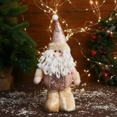 Мягкая новогодняя игрушка в стиле советского шебби-шика изображает Деда Мороза в костюме с цветочками. Ее высота 30 см делает ее привлекательным украшением для праздничного интерьера, создающим уют и атмосферу зимних праздников.ОсобенностиРазмер – 30 см, подходит для размещения на полках, столах или каминах.Образ – Дед Мороз, выполненный из мягконабивных материалов без дополнительных особенностей.Тематика – новогодние персонажи и герои зимних праздников.Стиль – сочетание советского стиля и шебби-шика придает игрушке особую изысканность и ностальгическую атмосферу.Материал – мягкий и безопасный текстиль, не требует питания или источников энергии.Наличие ног – позволяет фигурке устойчиво стоять или сидеть в различных позах без подставки.Преимущества использованияДобавляет праздничное настроение и уют в интерьер на Новый год и Рождество.Может служить самостоятельным украшением или частью декоративных композиций.Подчеркивает атмосферу торжества благодаря классическому стилю и аккуратной работе.Изготовлена из мягких материалов, безопасна для детей и долговечна в использовании.Эта мягкая фигурка Деда Мороза станет отличным подарком или дополнением к зимнему декору. Ее качественное исполнение и стильное оформление подчеркнут праздничное настроение и создадут уютную атмосферу в вашем доме. Простая в уходе и долговечная, она прослужит вам долгие годы, радуя вас каждый сезон зимних праздников.
