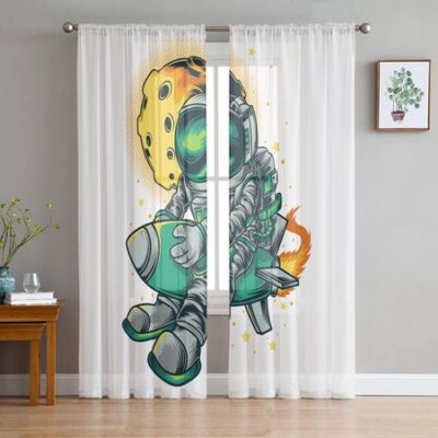 Иллюстрация Астронавт Ракета Планета Шифоновые Прозрачные Шторы для Гостиной Спальни Домашний Декор Оконная Вуаль Тюлевая Штора Драпировки W135 x H114cm