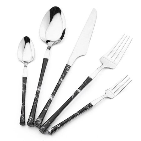 Главная » Все для дома Имитация черной мраморной ручки, столовые приборы, столовая посуда из нержавеющей стали, нож, вилка, ложка, набор столовых приборов, кухонная посуда 1set чёрный/серебряный Просмотров 13 JANKNG HOME