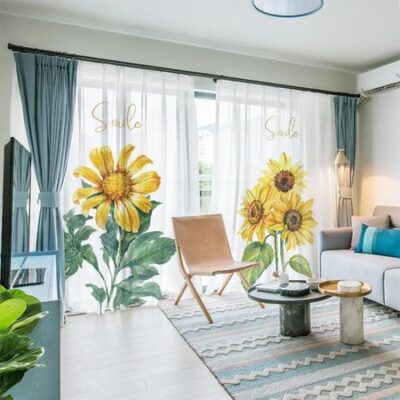 Индивидуальные шторы в пасторальном стиле с изображением подсолнуха, детской спальни, гостиной, виллы, полузатемняющие шторы на окна, вуаль, 2 шт. 2x50W100H(CM)hook