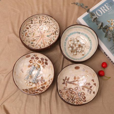 Главная » Все для дома Инкрустированная ракушками расписная кокосовая скорлупа чаша натуральные материалы конфетница стол Style D Просмотров 1 shiyunjianshe