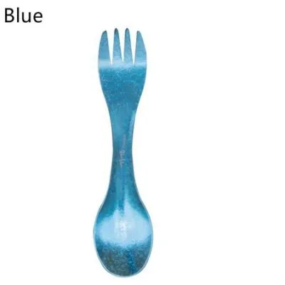 Инструмент для кемпинга, экологические портативные ложки с длинной ручкой, столовые приборы, вилка, посуда из чистого титана, аксессуары для пикника на открытом воздухе, столовые приборы синий