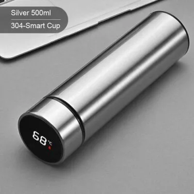 Интеллектуальный термос из нержавеющей стали с дисплеем температуры, умная бутылка для воды, термосы, термосы, кофейная чашка 500 мл серебряный