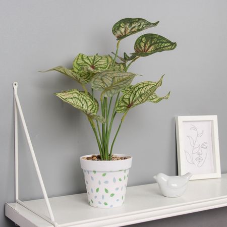 Добавьте зелени и свежести в ваш дом! Искусственный цветок с аглаонемой – это идеальное решение для тех, кто хочет украсить пространство без лишних хлопот. Высота 33 см делает его заметным акцентом, который легко вписывается в любой интерьер.Никакого ухода: этот цветок не требует полива или особого внимания, что позволяет вам наслаждаться его красотой без забот.Долговечность: изготовленный из качественных материалов, он сохраняет свой привлекательный вид на протяжении долгого времени, радуя глаз каждый день.Универсальный стиль: зелёный цвет аглаонемы легко сочетается с различными стилями интерьера, от современного до классического.Компактные размеры: идеален для размещения на столах, полках или подоконниках, добавляя уют в любое пространство.Создайте атмосферу уюта: Искусственный цветок с аглаонемой станет отличным дополнением к вашему дому или офису. Он добавит живость и красоту без лишних хлопот. Подарите себе возможность наслаждаться природой каждый день!